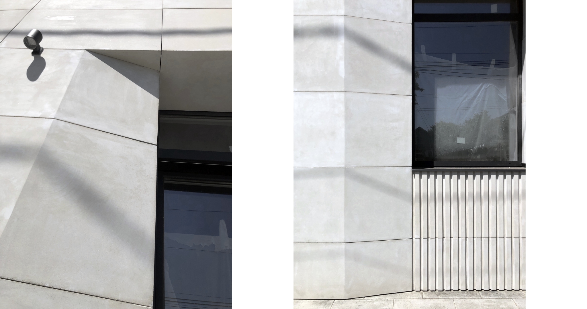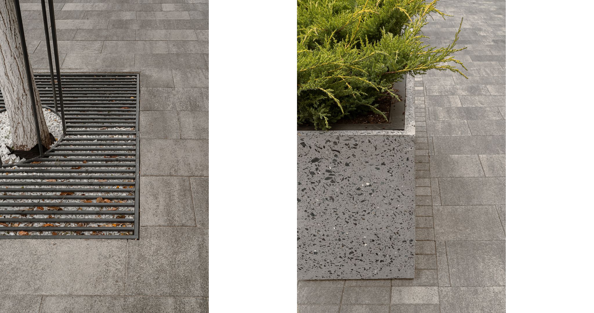 Еще одним важным элементом фасада стала новая кровля и усиление приямка входа в подвал (вход сделан в советское время, когда подвал использовался как бомбоубежище). Конструкция выполнена в виде перголы, ритм вертикальных элементов вторит ритму лопаток на фасаде.